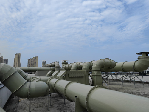 調查室工業廢氣 → 親水性炭過濾水器 → 引真空風機 → 廢氣排放
